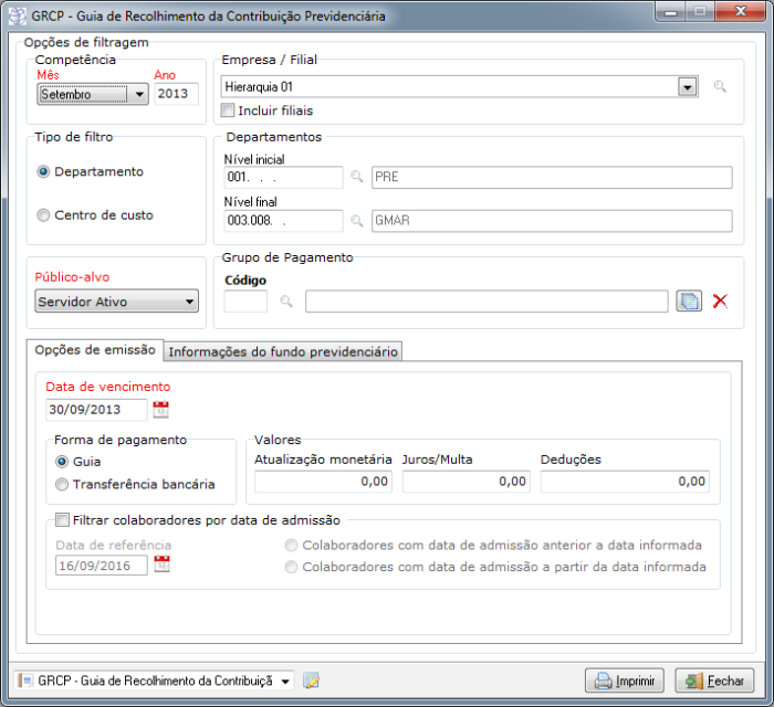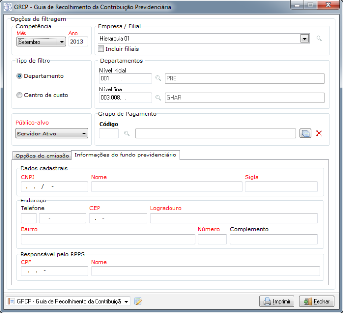 13137 - Disponibilizado o relatório "GRCP - Guia de Recolhimento da Contribuição Previdenciária"