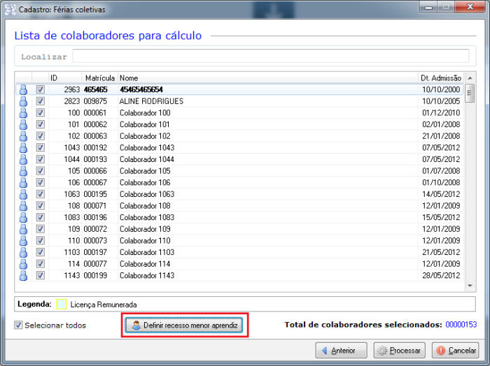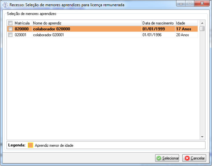 13158 - Disponibilizada funcionalidade que permite férias coletivas para menor aprendiz fora do recesso escolar