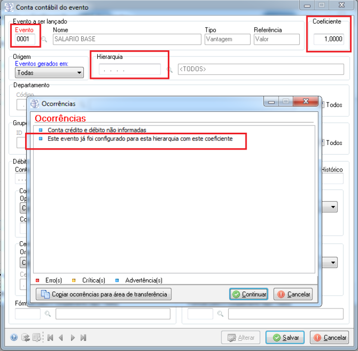 13580 - Exibindo mensagem de alerta quando a configuração contábil for realizada utilizando o mesmo evento, hierarquia e coeficiente