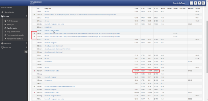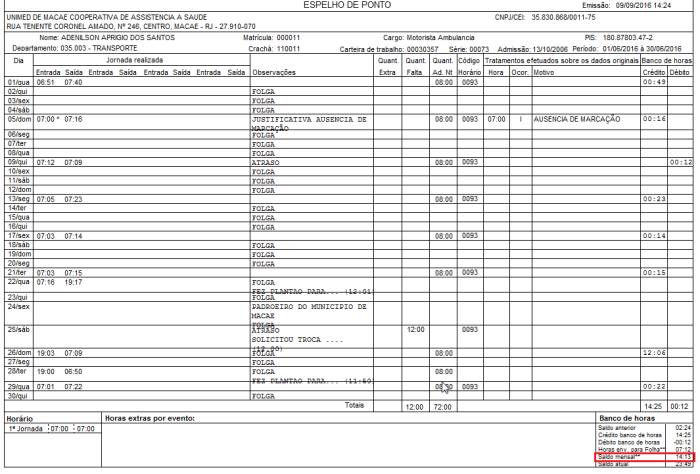 13595 - Calculando a diferença de BH (+ e/ou ) para dias com pagamentos realizados