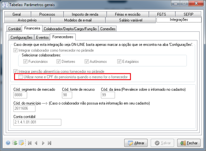 13629 - Possibilitando utilizar os dados do pensionista na integração financeira