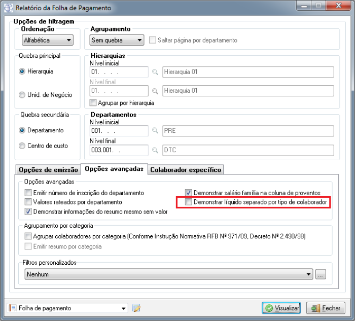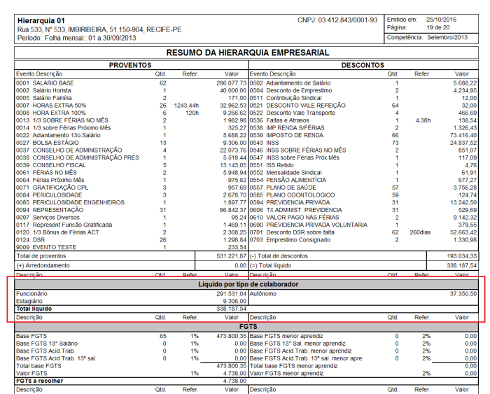 13578 - Incluída opção para demonstrar o total líquido no resumo da folha, separando por tipo de colaborador