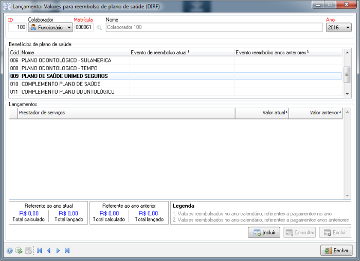14127 - DIRF 2017 - Disponibilizada funcionalidade para efetuar lançamento de reembolso de plano de saúde