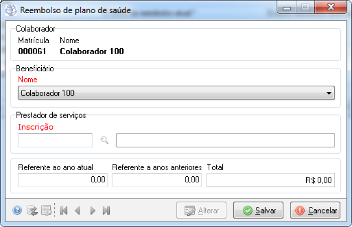Descrição | Disponibilizada funcionalidade para efetuar lançamento de reembolso de plano de saúde para titulares e dependentes, mês a mês. ![]() ![]() Para mais informações, clique aqui. |